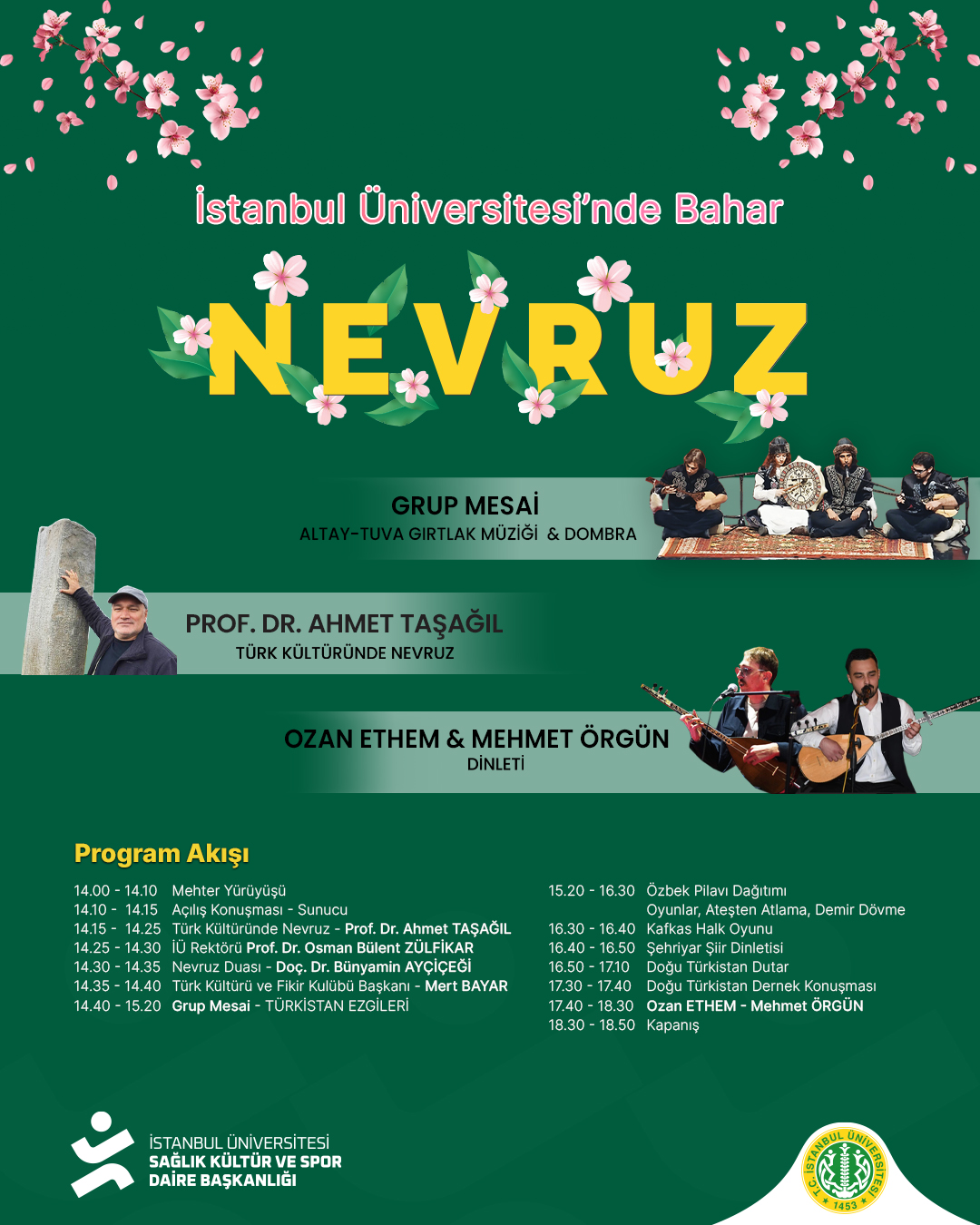 Baharın gelişi, birlik, beraberlik ve yenilenmenin simgesi olan Nevruz Bayramı, İstanbul Üniversitesi’nde kültür, müzik ve geleneksel unsurların bir araya geldiği özel bir programla kutlanacaktır.